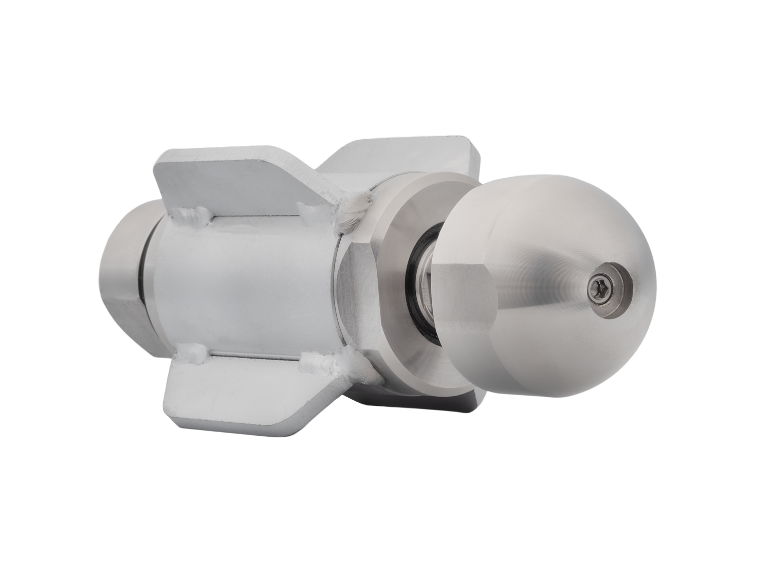 This nozzle is made of stainless steel, ensuring durability and corrosion resistance. The Tarantula 1” nozzle is equipped with a 1” – 3/4” thread, making it compatible with a wide range of high-pressure hoses. Its design allows effective cleaning in pipes with diameters from 8” to 36”.