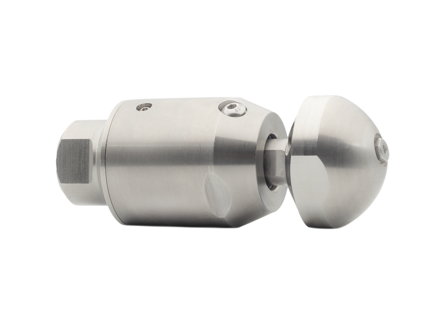 This nozzle is made of stainless steel, ensuring durability and corrosion resistance. The Tarantula 80 is equipped with a 1/2” thread, making it compatible with a wide range of high-pressure hoses. Its design allows effective cleaning in pipes with diameters from 4″ to 12″.