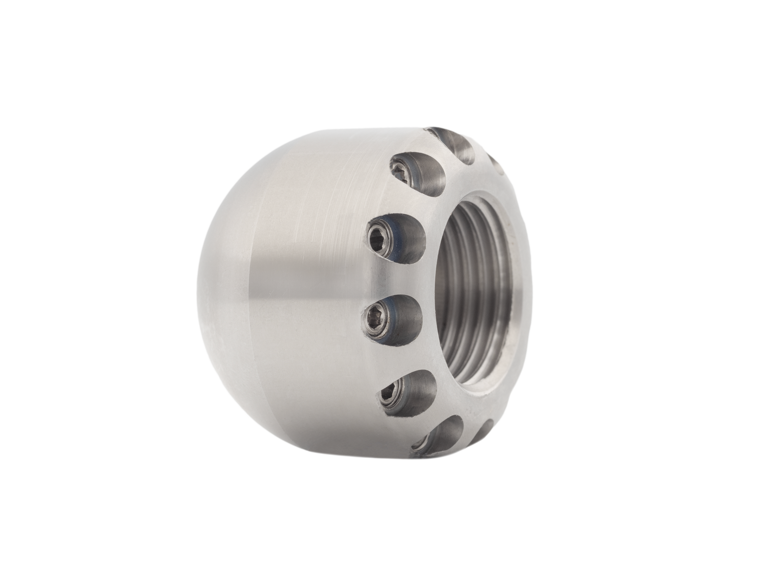 This nozzle has 12 rear ceramic jets and one front jet. All jets are ceramic, ensuring greater durability and wear resistance. The rear jets are designed at a 7º angle, providing excellent efficiency in cleaning the internal pipe walls. The front jet is essential for drilling and removing solid blockages such as debris and grease build-up.