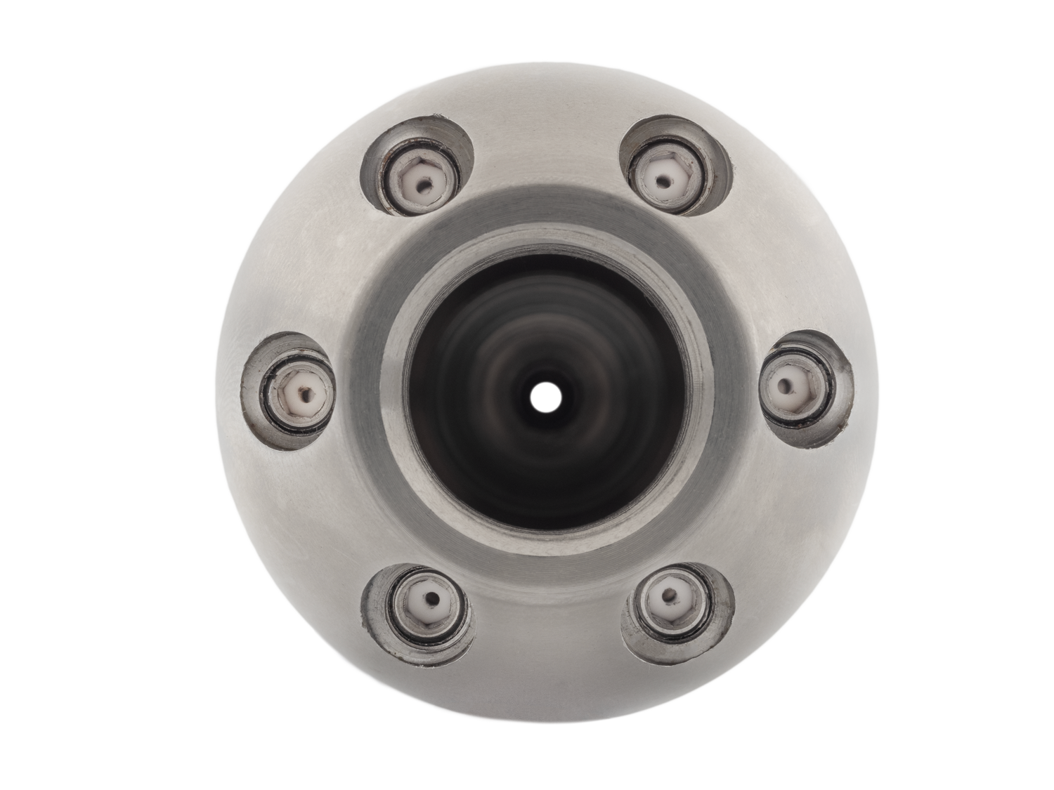 The Bullet 1/2” Six Jets nozzle excels at unblocking pipes thanks to its head with six rear M6 jets, providing an extreme and efficient cleaning. It operates with a water flow starting from 10 GPM. Its design enables it to travel long distances inside pipes, reaching even the hardest areas and guaranteeing a deep and uniform cleaning along the pipe.