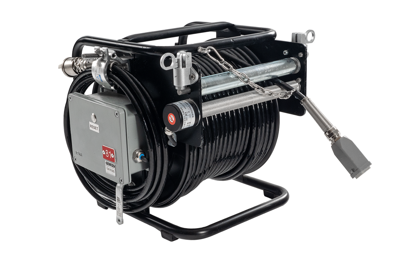 - Cable reel: Available in 30 m or 50 m options, made with a durable PUR-coated cable.